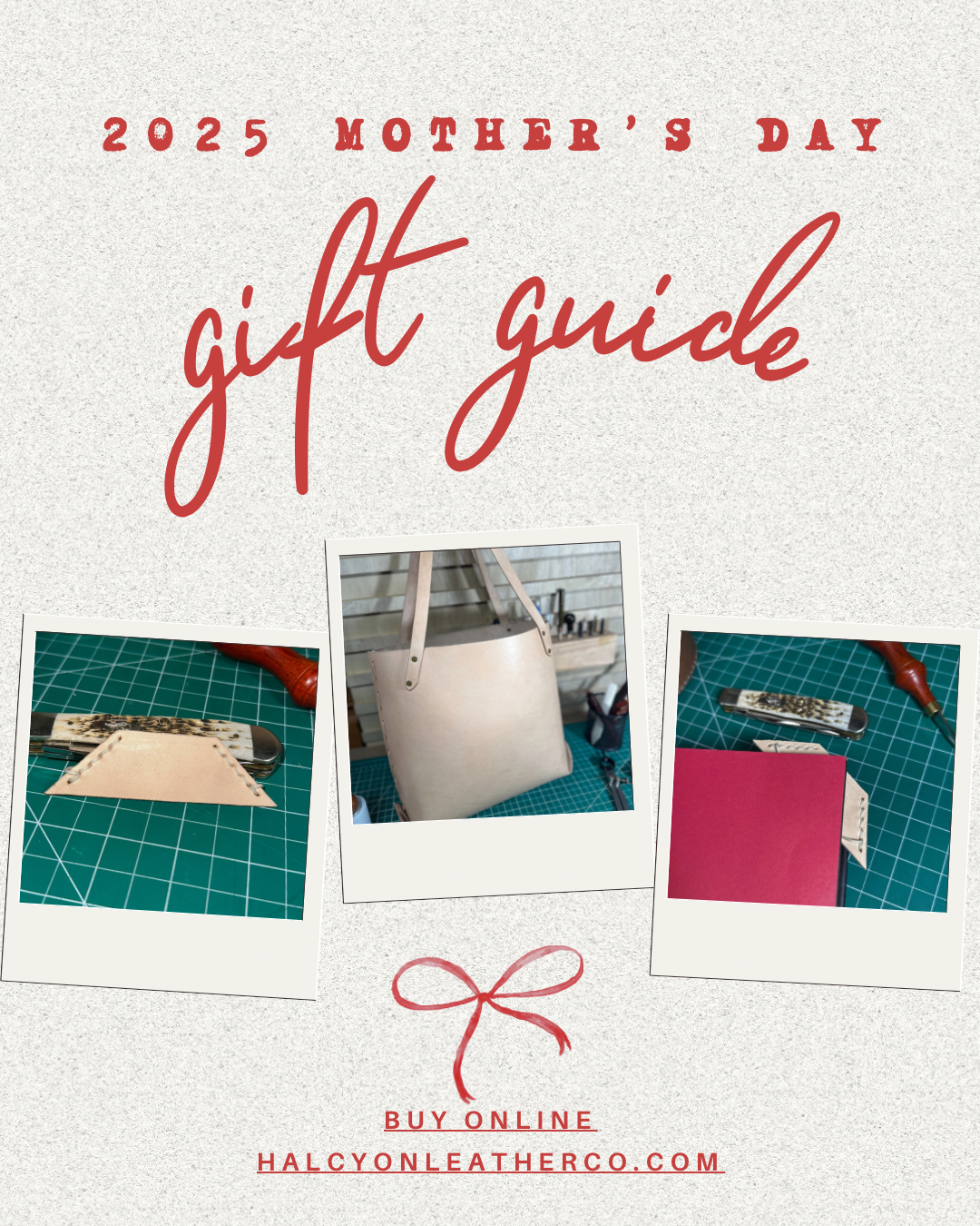Celebrate Mother’s Day and Father’s Day with handcrafted leather gifts that last. Explore totes, bookmarks, wallets, belts, and more from Halcyon Leather Co. — made one at a time with care.