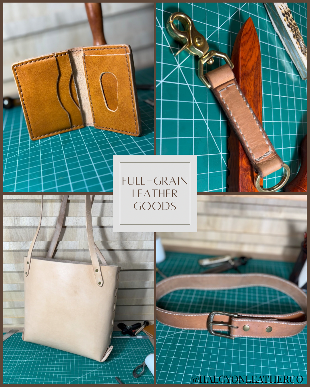Discover why full-grain leather is the highest quality leather available. Learn what makes full-grain, vegetable-tanned leather so durable, unique, and perfect for handcrafted goods at Halcyon Leather Co.